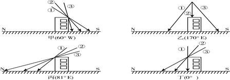 3、单选题 2010年3月28日的“地球一小时”熄灯活动,是由世界自然基金会发起应对气候变化、倡导节约能源的集体行动。下图中①②③是甲乙丙丁四地两分两至日的正午太阳光线。据此回答下面5-6题。