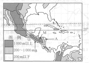 (2) 图中的A、B两海域是世界著名的渔场,简析其形成大渔场原因的差异。(8分)