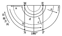 1、a、b、c、d、e表示的洋流中,属于寒流的是