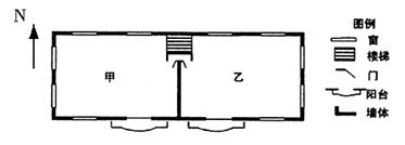 A.正午太阳高度A>B>C>D B.自转线速度A<B<C<D C.白昼长短A>D>C>B D.地方时A=B=C=D 3、综合题 (28分)该图是“我国辽东半岛南端的大连市(39°N、120°E)某房地产公司开发的一梯两户式多层商品房平面示意图”,读图回答下列问题。 |