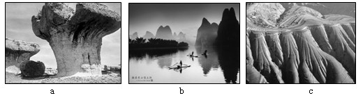 (4)下图中最有可能在E地拍摄的照片是________,该地貌景观形成的主要地质作用是________。