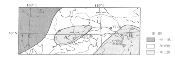(1)分析A地区农作物一年三熟的原因。(6分)