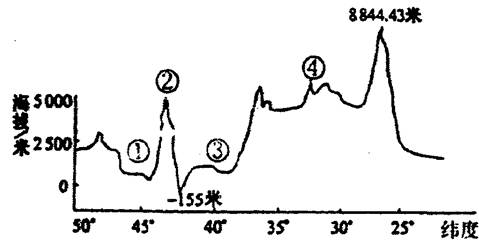 4、单选题 读我国东经89°附近地形剖面图,判断3—4题。