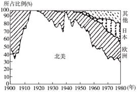 A.炼铝厂? B.食品厂? C电子厂? D.汽车厂 小题3:从该企业成本角度考虑,在①②③④地点中最佳的区位是 A.①地 B.②地 C.③地 D.④地 2、单选题 下列产业活动主要指向消费人群的是: 3、单选题 当前世界工业发展的特点是(? ) 4、单选题 服装厂、机械厂、食品加工厂和印刷厂集聚在同一工业区内,主要原因: 5、综合题 (10分)下图是“1900~1980年世界汽车生产份额的地域变动图”,据此完成下列问题。 |