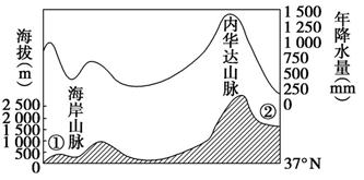5、单选题 该图是“沿37°N世界某地地形剖面及降水量分布图”,读图完成问题。