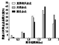 A.直接相关企业数量占该类企业总数比重,在距离车站0.5~1.0 km圈层中最小