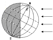 2、综合题 读6月22日太阳照射图,完成下列填空。
