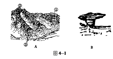 5、综合题 读下面两种地貌图(图4—1),回答问题: