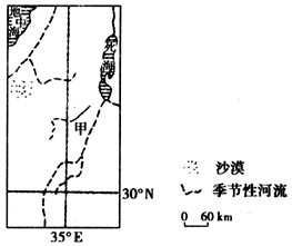 A、甲地可建设草方格沙障,降低风速,阻止流沙