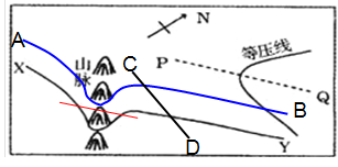 小题2:如下图依地球自转线速度分布规律(自赤道向南北两极递减),AB线速度值大于XY,从画出的辅助线CD可以看出C地线速度大于D处,所以山脉东侧的地形地势西高东低,B对。