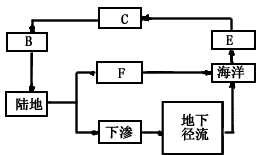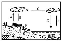 (3)选择左图中的字母填入右图中相应的方格内,以正确表示海陆间大循环过程。