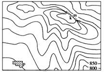 4、单选题 下图是北半球中纬度某地区的地形图,读图回答下列各题。