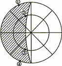 4、单选题 2004年3月22日到4月3日期间,可以看到多年一遇的“五星连珠“天象奇观。其中水星是最难一见的行星,观察者每天只有在日落之后的1小时内可能看到它。在图中阴影部分表示黑夜,中心点为极地。回答1—3题。