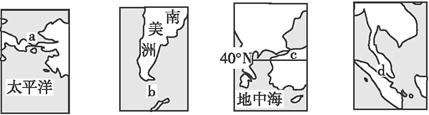 【小题1】读图,a是白令海峡,是亚洲与北美洲的分界,b是德雷克海峡,是南美洲与南极洲的分界。C是土耳其海峡,是亚洲与欧洲的分界。d是马六甲海峡,不是大洲分界。所以A、B、D错。C对。