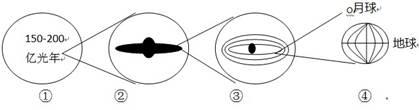 1、单选题 该图中①、②、③、④四幅图分别表示不同级别的天体系统,名称依次是(?)