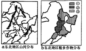 (1)描述a图所示东北地区地形的主要特征。(2分)