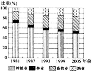 A.产业基础良好 B.毗邻港澳和东南亚地区 C.腹地范围广阔 D.技术水平高 参考答案: 本题解析:本题考查此题考查学生读图分析能力(珠三角地区)。 本题难度:一般 3、单选题 东北地区作为全国农产品生产基地,首先应该是 参考答案:C 本题解析:东北地区平原面积广阔,土地资源丰富,土壤肥沃,人均耕地多,故应首先建成全国商品粮基地。 本题难度:简单 4、单选题 下图示意我国东部沿海地区1981~2005年农业产值结构变化。读图完成1~2题。 参考答案:1、D 本题解析: 本题难度:一般 5、单选题 图16为“循环经济模式图”。回答问题 参考答案:1. D 本题解析:本题考查循环经济和环境保护。 本题难度:简单 |