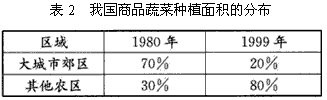 3、单选题 1979—2000年,我国蔬菜种植规模和种植地区分布都发生了显著变化。分析表1、表2,完成1—2题。