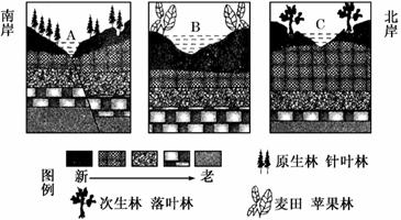 2、综合题 图中三幅小图为某自西向东流的河流上、中、下游三个不同河段处的河床剖面示意图。读图,回答下列问题。
