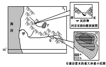 1、多选题 下图为某区域图,图中右侧分别表示乙河流局部河谷剖面示意图和Q湖不同季节的蓄水面积分布图,读图回答问题。