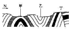 (2)写出图中各点的地质构造类型:甲______,乙______,丁______。