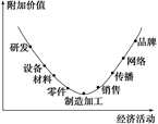 3、单选题 “微笑曲线”是台湾宏基公司董事长施振荣先生最早提出的,它起初被用于说明电脑行业不同环节与所实现的附加价值之间的关系,后来被广泛应用于其他领域。据此回答9-11题: