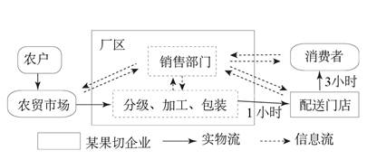 5、单选题 鲜切水果主要是为了满足消费者的即食需求,对新鲜水果进行处理,使产品保持生鲜状态的鲜切制品。鲜果切从加工到送到客户手中不超过6小时,以确保用户能食用到最新鲜的果切。读下图,回答下列各题。