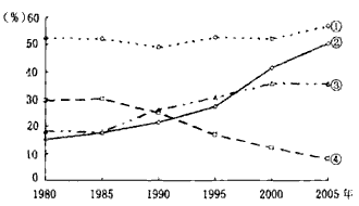 2、多选题 下图为“江苏省三大产业产值比重与城市人口比重的变化图”。读图回答1—2题。
