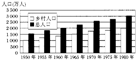 5、单选题  该图是某地区1950年—1980年人口增长图,读图回答问题。
