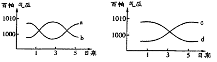 4、单选题 下面是不同天气系统过境前后气压变化示意图,四条曲线表示反气旋过境前后的是