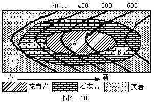 4、综合题 下图为岩层地质界线和等高线示意图(图4—10),读图回答: