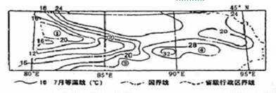 2、单选题 下图表示我国某地区7月份平均气温的分布,读图完成4~5题。