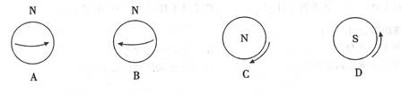2、单选题 下面四幅图中,能够正确表示地球自转方向的是(? )