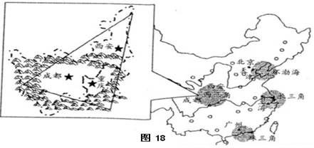 (3)与长三角、珠三角经济区相比,规划建设中的西三角经济区有那些有利条件。(4分)