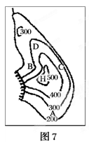 小题1:图示B处等高线符合“凸高为低”为山谷地带,泥石流发生于河谷地带。