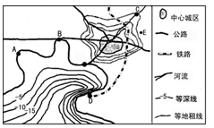 4、多选题 下图为“我国东南沿海某城市分布示意图”,读图完成下列问题。