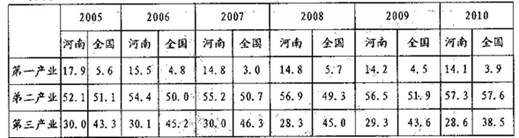 材料三:河南省产业结构表