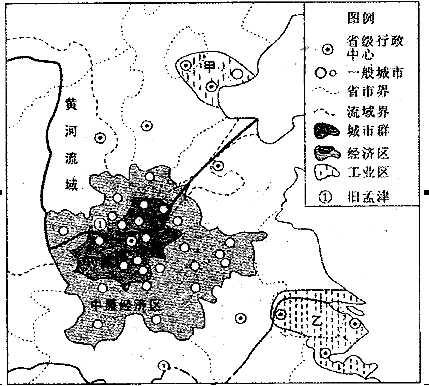 5、综合题 (22分)阅读图文材料,回答下列问题。 材料一:2 01 2年11月1 7日,国务院正式批复了《中原经济区规划》,成为我国继珠三角、长三角,京津冀、成渝经济区之后的第五大经济区。经济区范围包括河南、山东、安徽、河北、山西等地市,总面积约2 8 9万平方公里,总人口约1.5亿。 材料二:我国中原经济区度其周边地区略图。