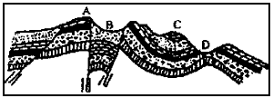 (1)A、B、C、D四处,属于向斜的是_________。