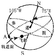 5、单选题 中国第二艘载人航天飞船“神舟六号”于2005年10月12日9点在酒泉卫星发射中心成功发射升空。飞船绕地飞行轨道与地球赤道的夹角为42.4度,绕地球一圈需要90分钟,并于10月17日4时33分在内蒙古中部顺利着陆。读神舟六号飞船绕地轨道及方向示意图,飞船飞行期间,下列叙述正确的是