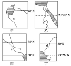 小题1:甲地为温带大陆性气候,乙丙丁三地均为热带沙漠气候,他们都面临着土地荒漠化的问题。