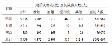资料:汶川地震引发了大量的次生地质灾害。地震后,国土资源部迅速组织国家和10余省的地质调查力量实施紧急排查,经过一个多月的艰苦地面调查,初步掌握了汶川地震区地质灾害基本情况(见表2)。