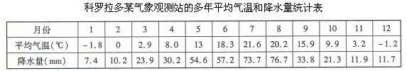 1、单选题 科罗拉多大峡谷是世界陆地上最长的峡谷之一。从谷底向上,沿岩壁出露着早古生代到新生代的各期岩系,并含有代表性生物化石,大峡谷因此有“活的地质史教科书”之称。读科罗拉多某气象观测站的多年平均气温和降水量统计表和美国科罗拉多大峡谷地区示意图,回答1—2题。