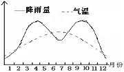 B.右图所示月份,该地常遭寒潮侵袭