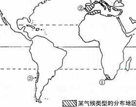 4、单选题 下图是世界某种气候类型的局部分布地区示意图。完成1~2题