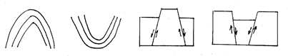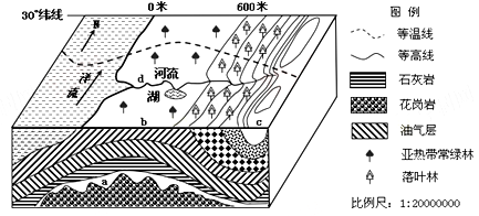 (3)b处为背斜,石油分布在向斜中;挖隧道应选择背斜b。b的顶部受张力,容易侵蚀,c部槽部受挤压坚硬。A处在高温高压的作用下,可能发生变质作用。