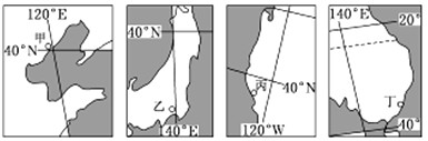 2、单选题 在下列四国局部图中,甲、乙、丙、丁为各国的重要海港。读图完成1—2题。