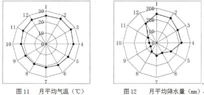 材料三:毛里求斯东南部某城市(图13中B城市)气候资料(图14、图15)