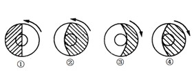 1、单选题 图中,日期相同的是(大圆圈表示赤道,小圆圈表示极圈,箭头表示地球自转方向)