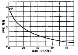 4、单选题 读图(纵坐标表示海底深度,横坐标表示海底地壳岩石年龄),下列地区所处的板块边界与甲处类似的是